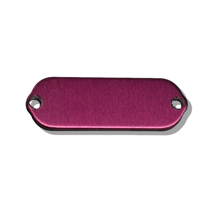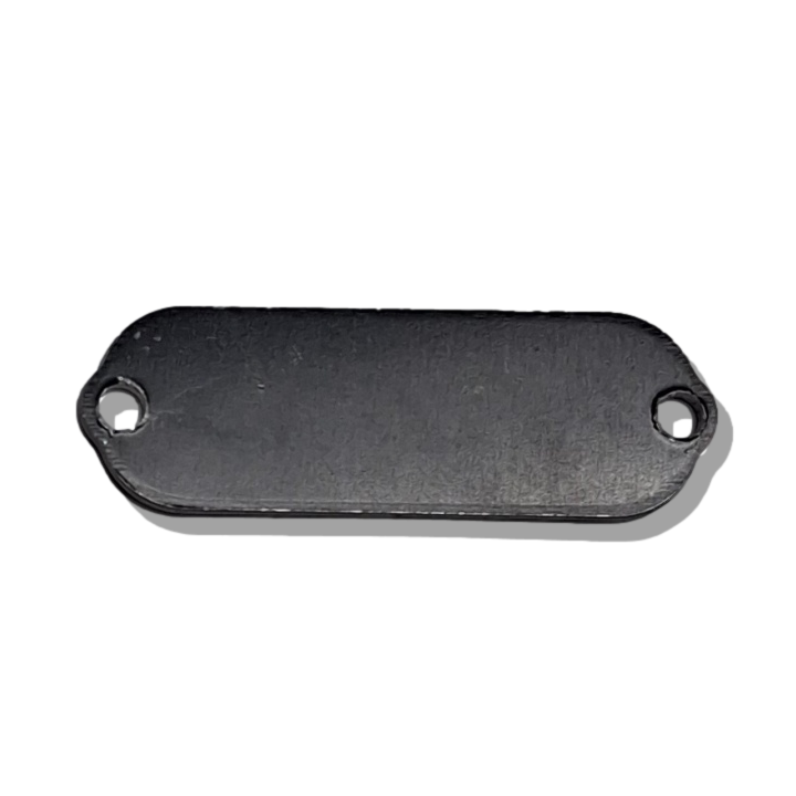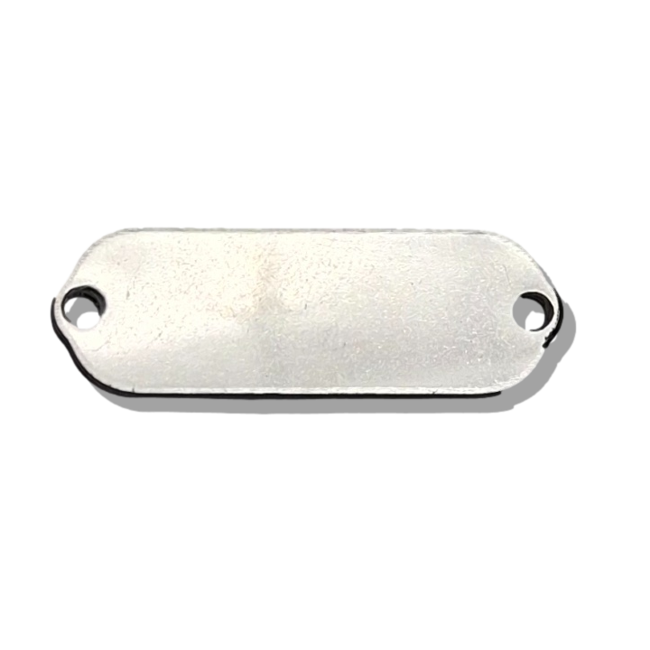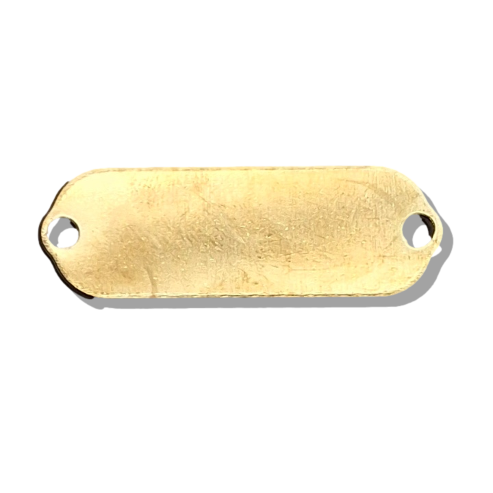These small rectangular-shaped dog collar nameplates are the perfect size for a small dog. They fit a collar that is a 11" to 14" fit. The collar must be wider than 5/8 inch. If you order with a collar, SFGC will rivet on your collar. If you buy it alone, then SFGC will send several rivets with it. In the comment box include the text you want on the tag. You can have up to 3 lines of text. If the text you have chosen does not fit, we will notify you. Click here for a DIY easy way to install it yourself.